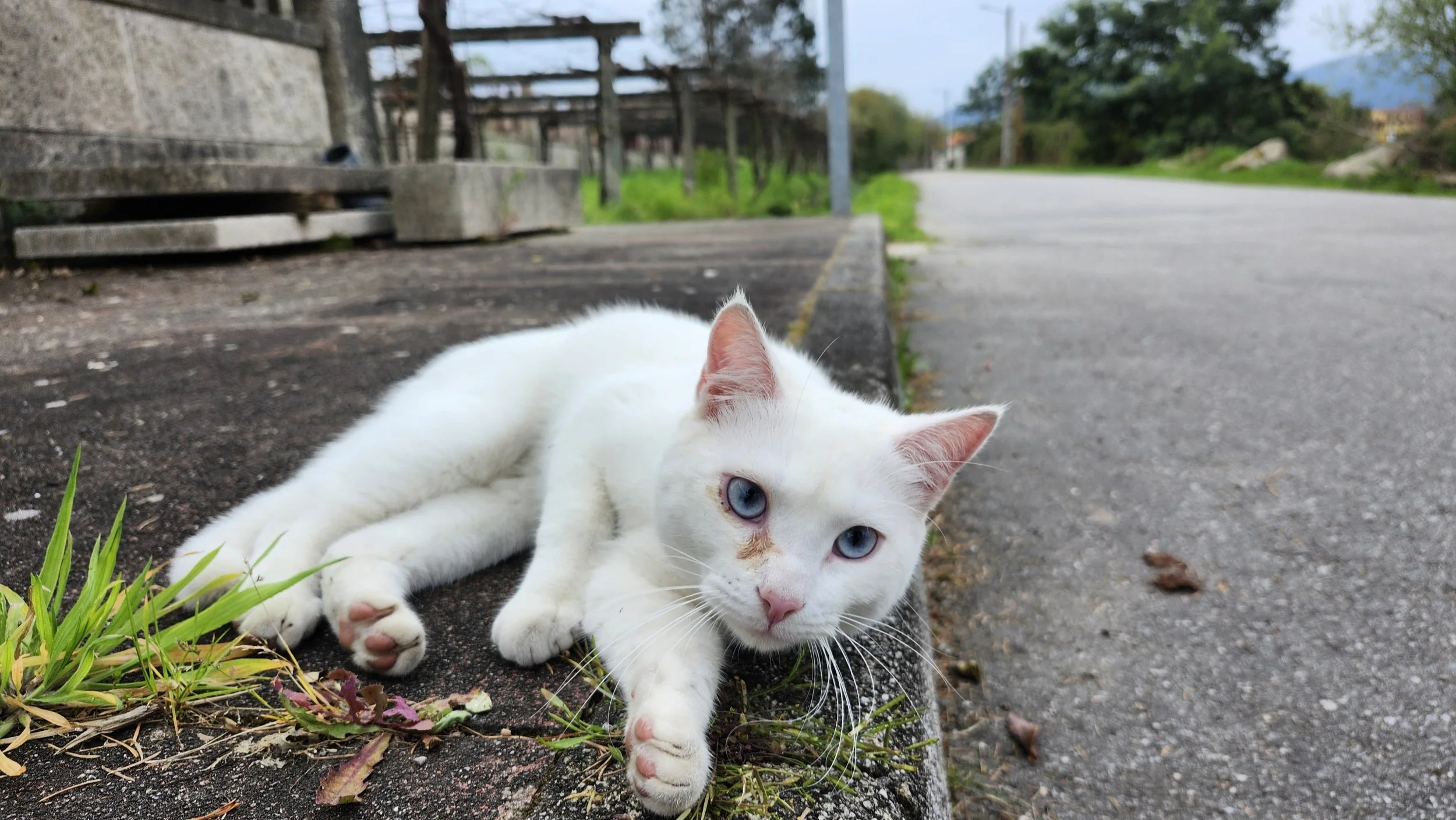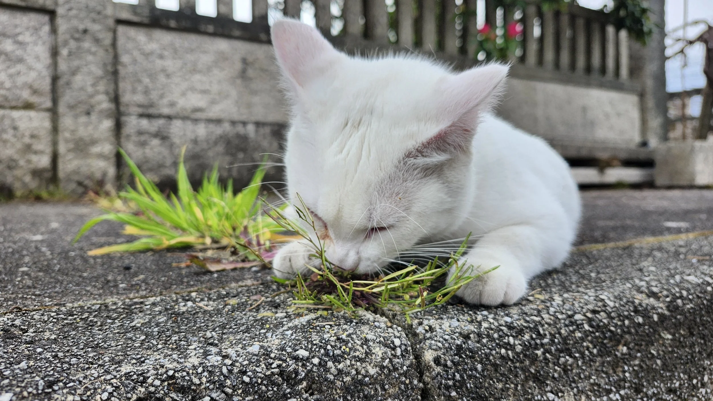 The best cat we’ve had all trip. It was very affectionate, but mostly was interested in rubbing itself on a weed growing out of a crack.