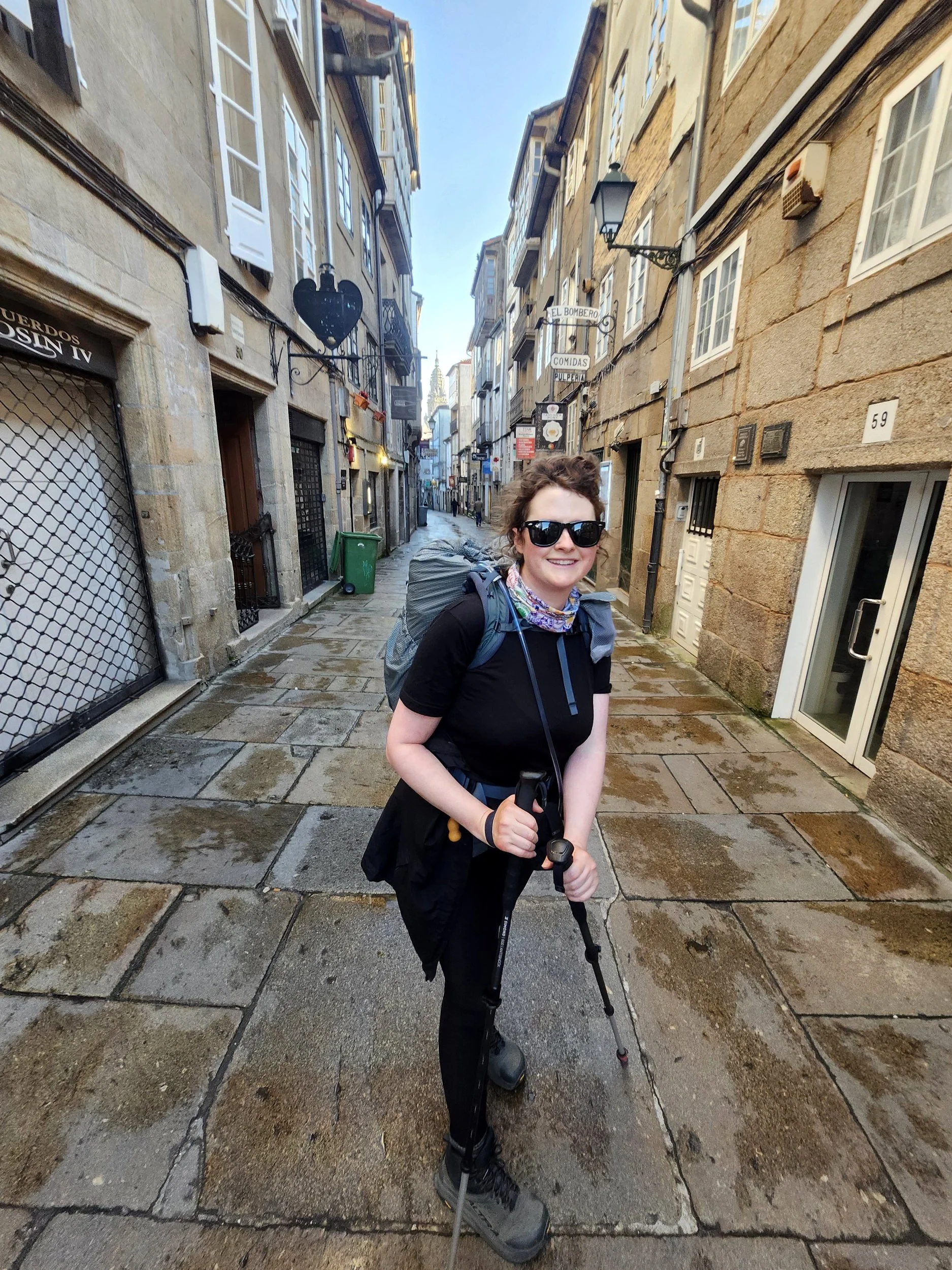 There are more pilgrims now. We are an active ant line of backpackers stretching miles and miles over the landscape. It’s mildly interesting thing to think about. If you looked down from a drone, or a plane, would we look like ants?