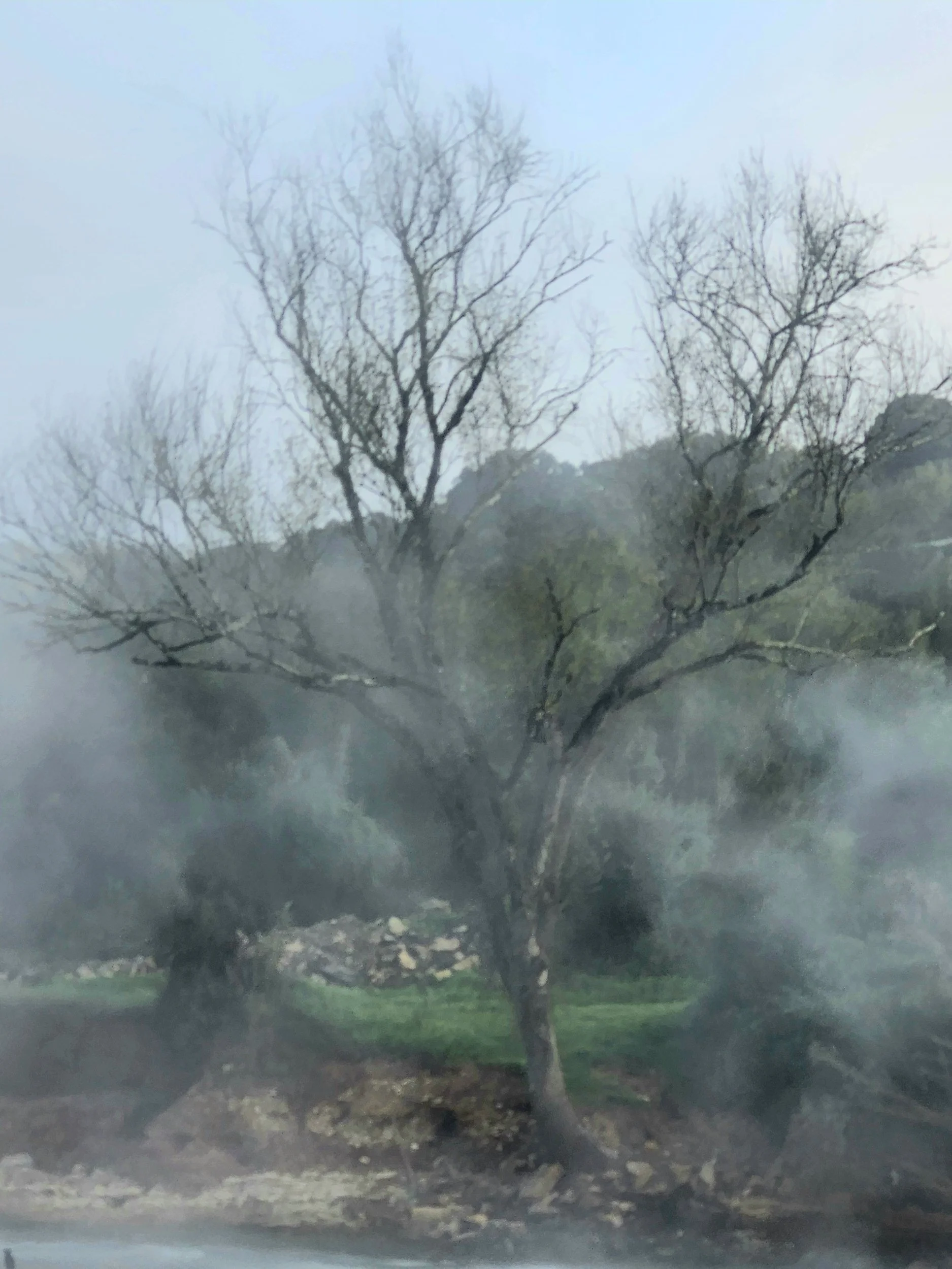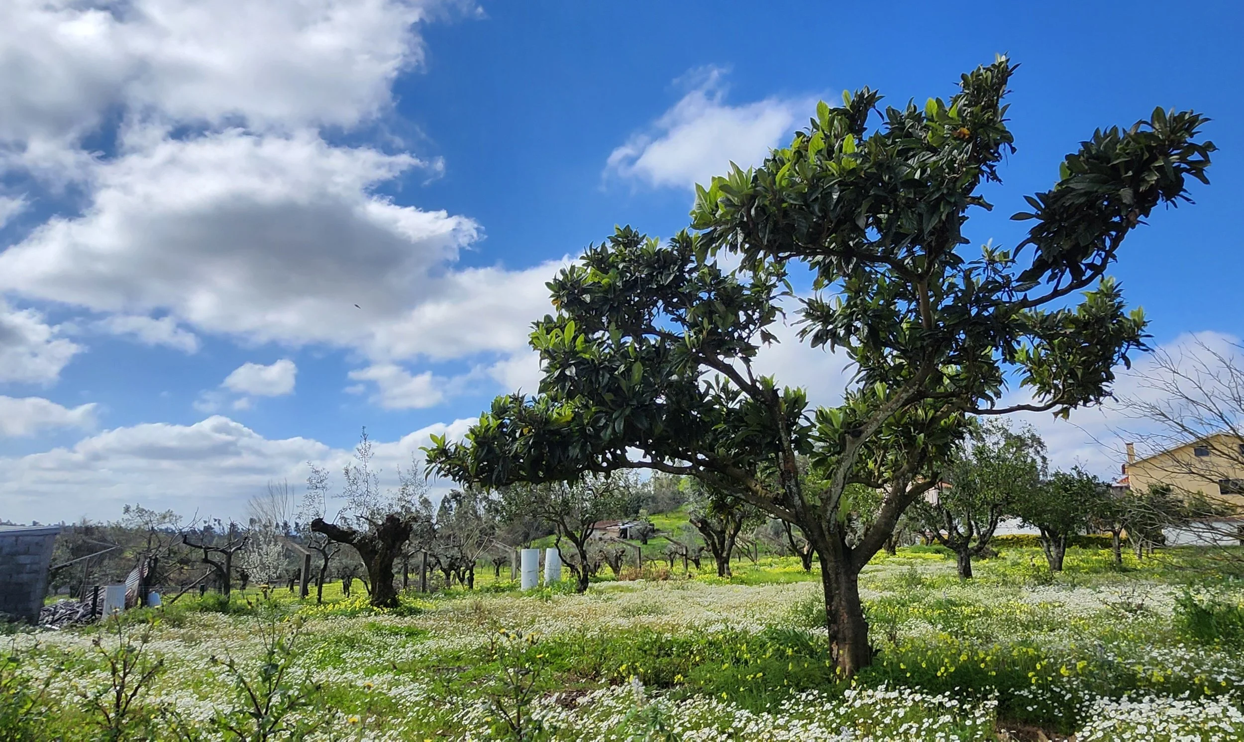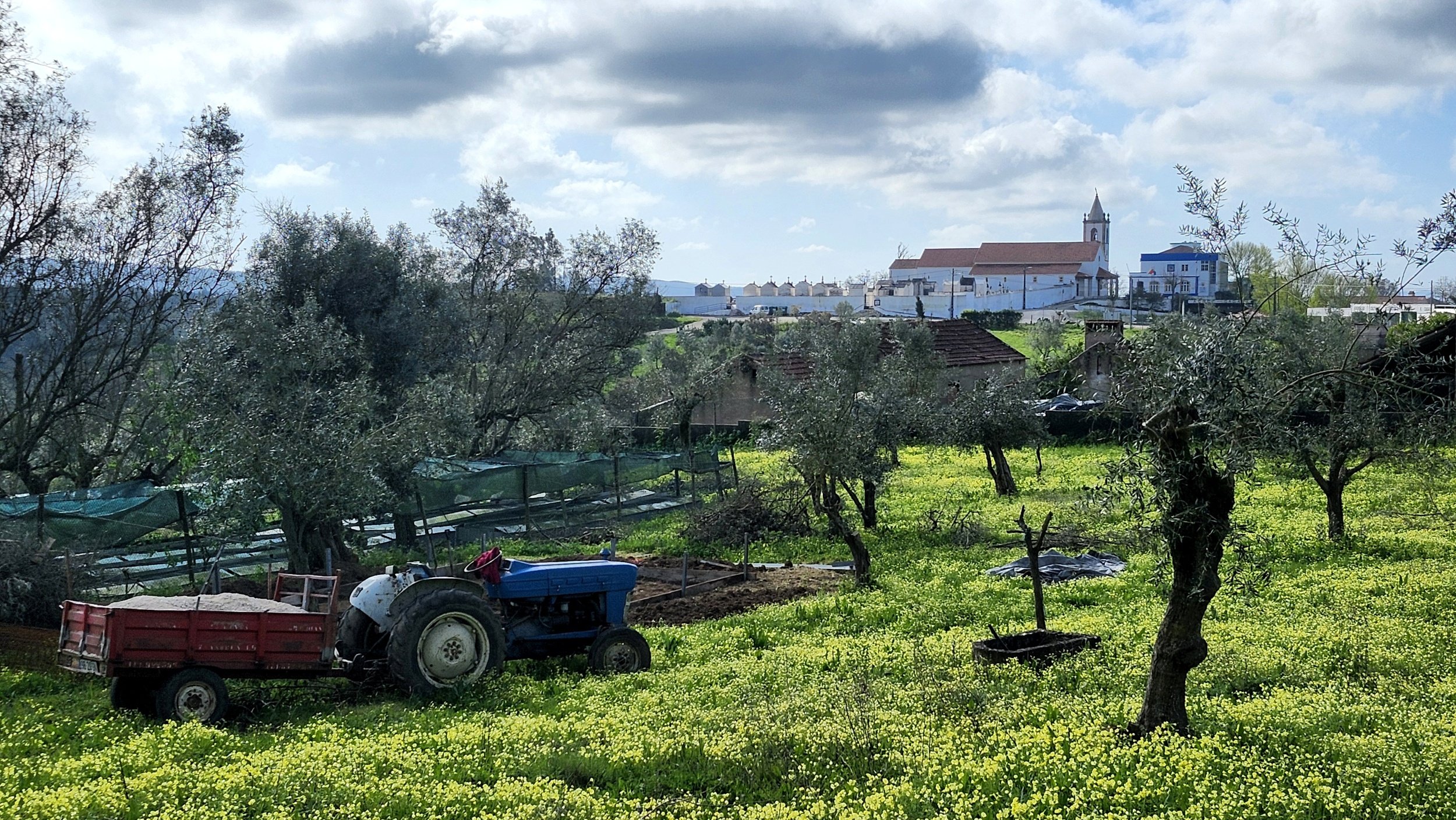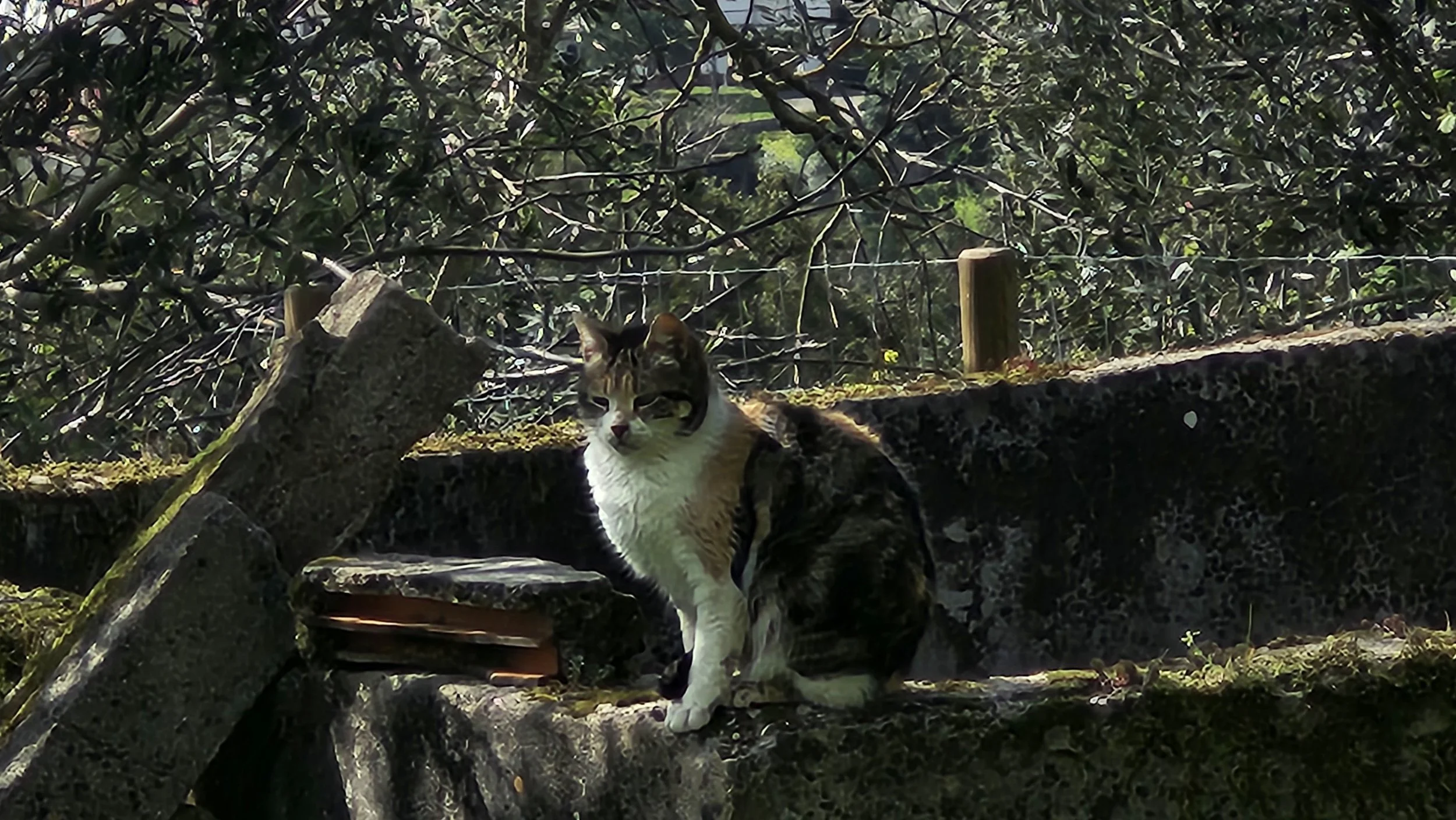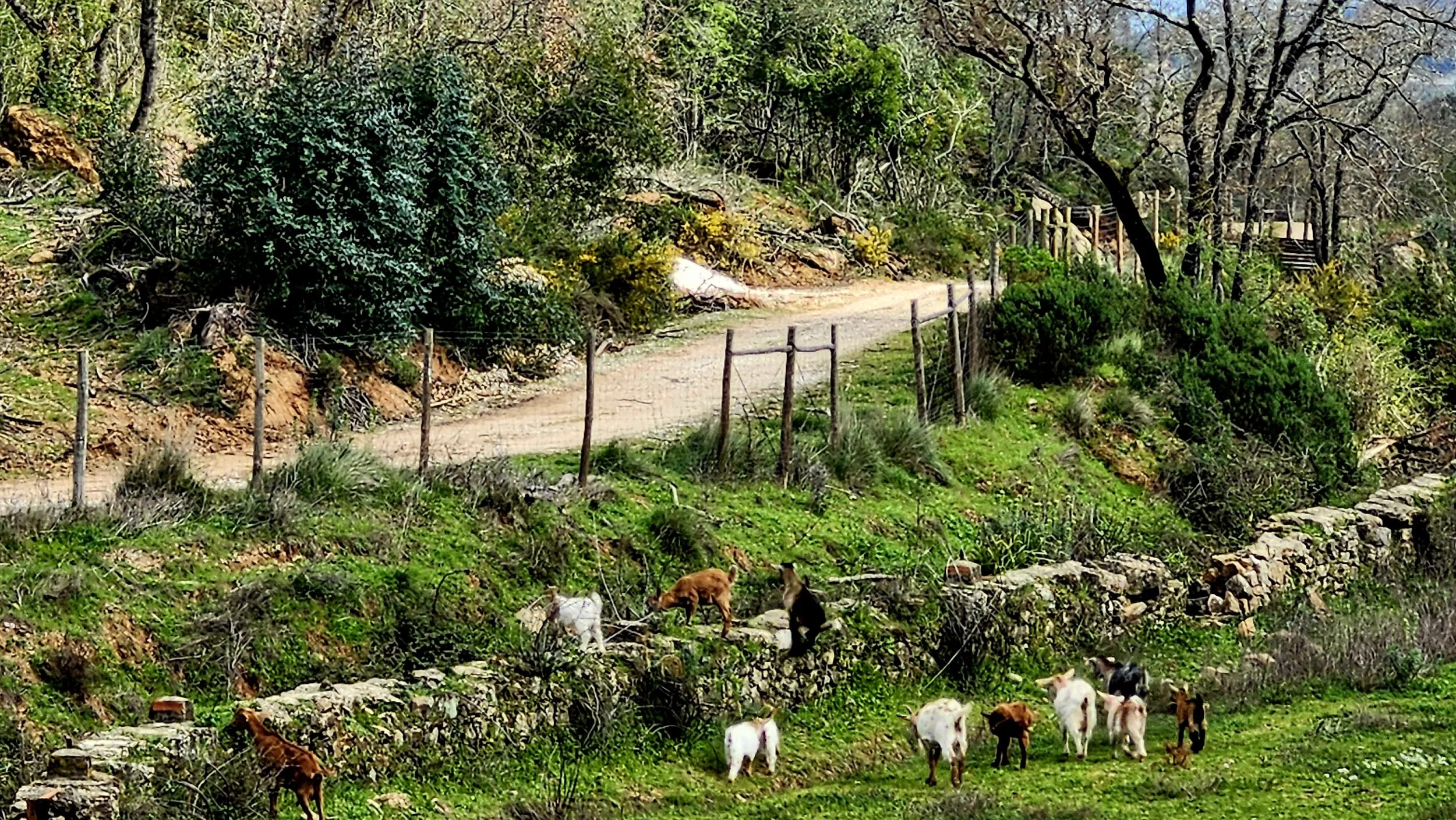 Old rock walls and olive trees.