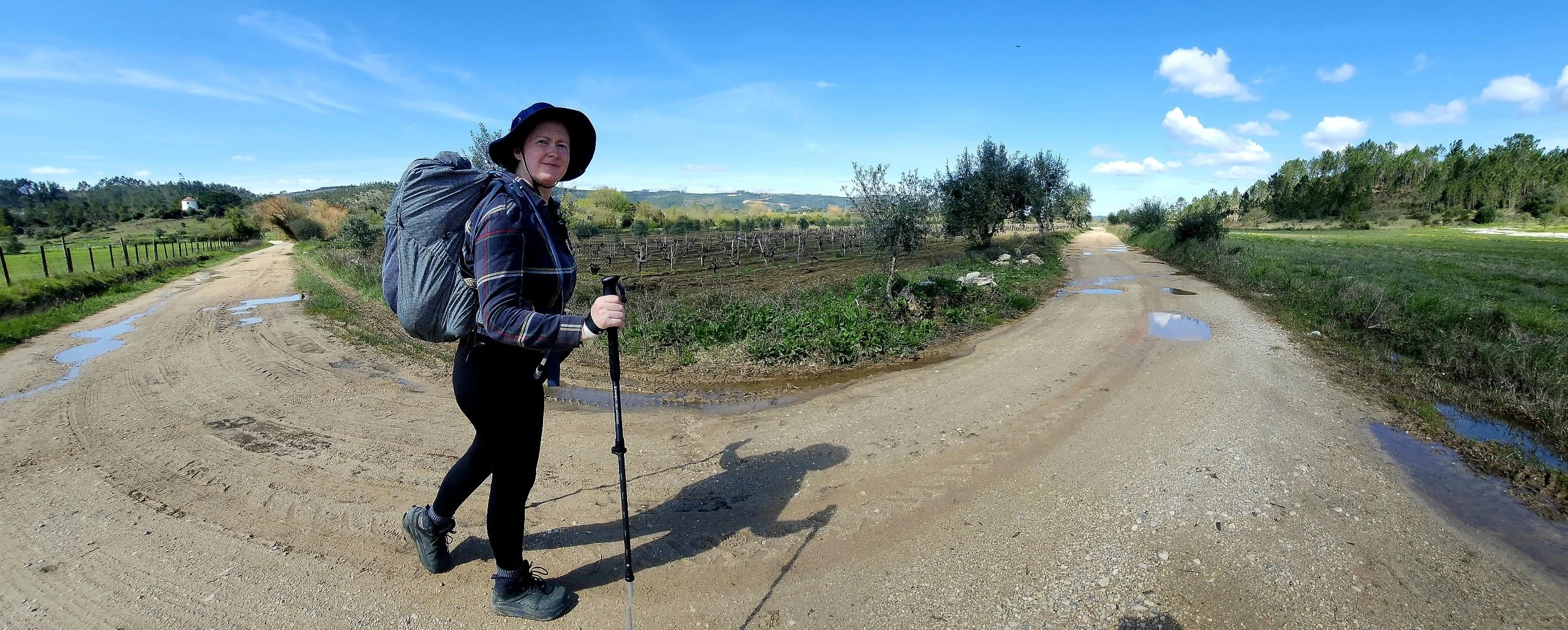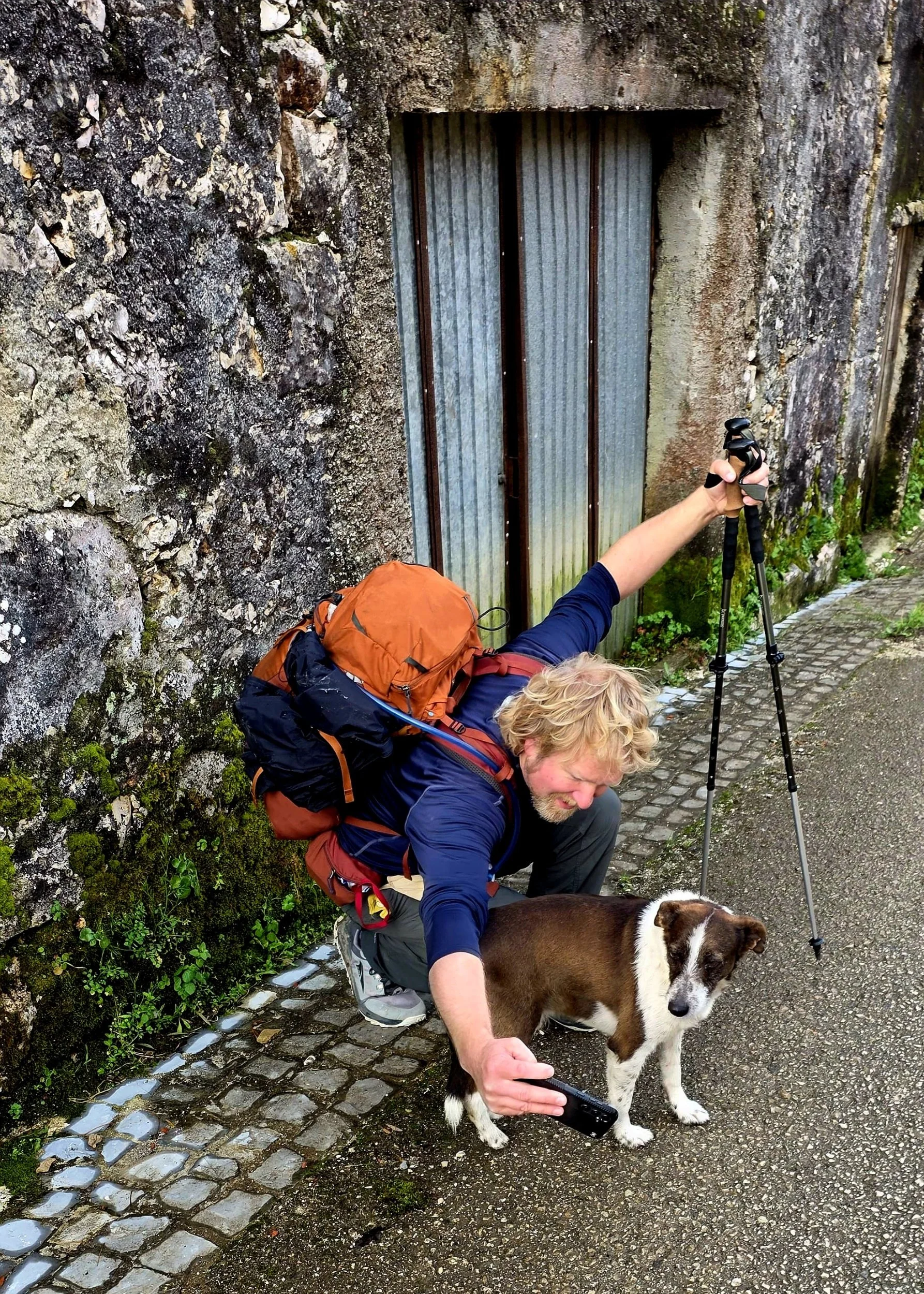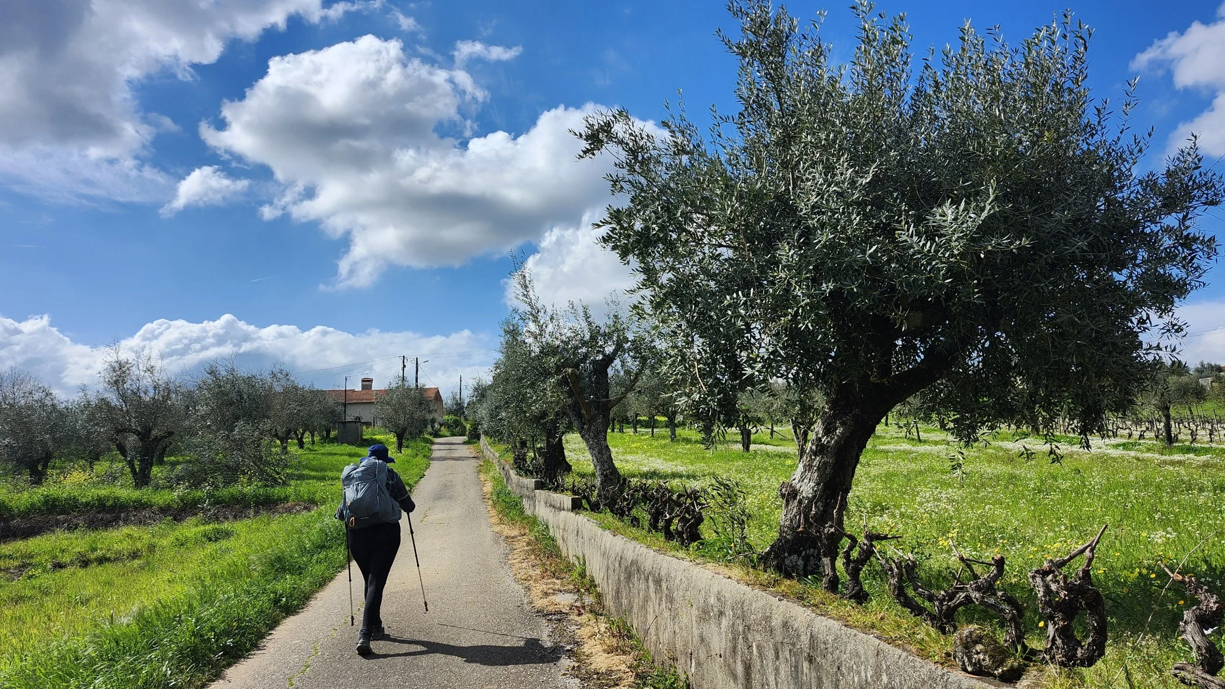 It was a great hiking temperature most of the day. The clouds and rain kept it cool. But this is still central Portugal in March, and when the sun hit us in full rain gear this afternoon, it was HOT! Think steamed clams.