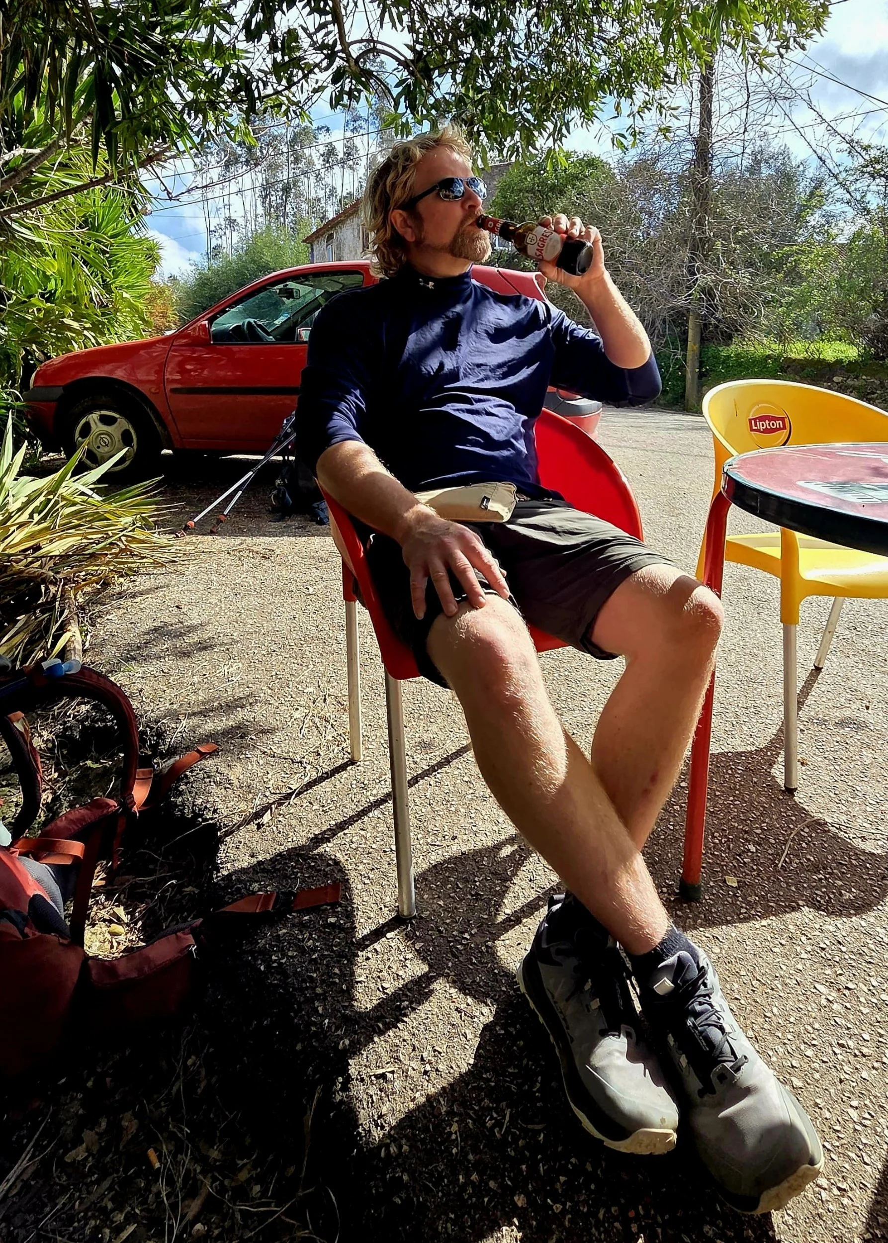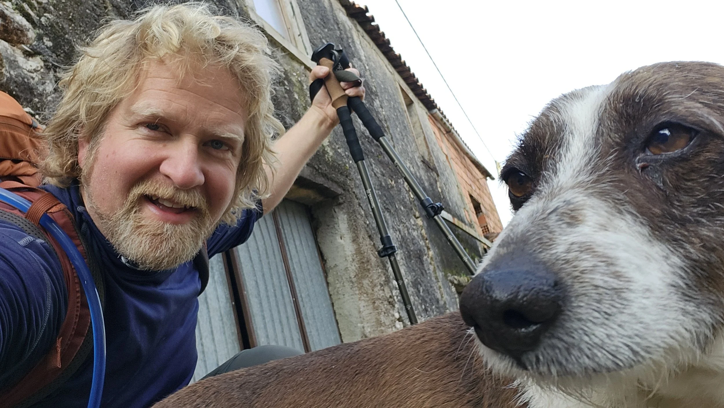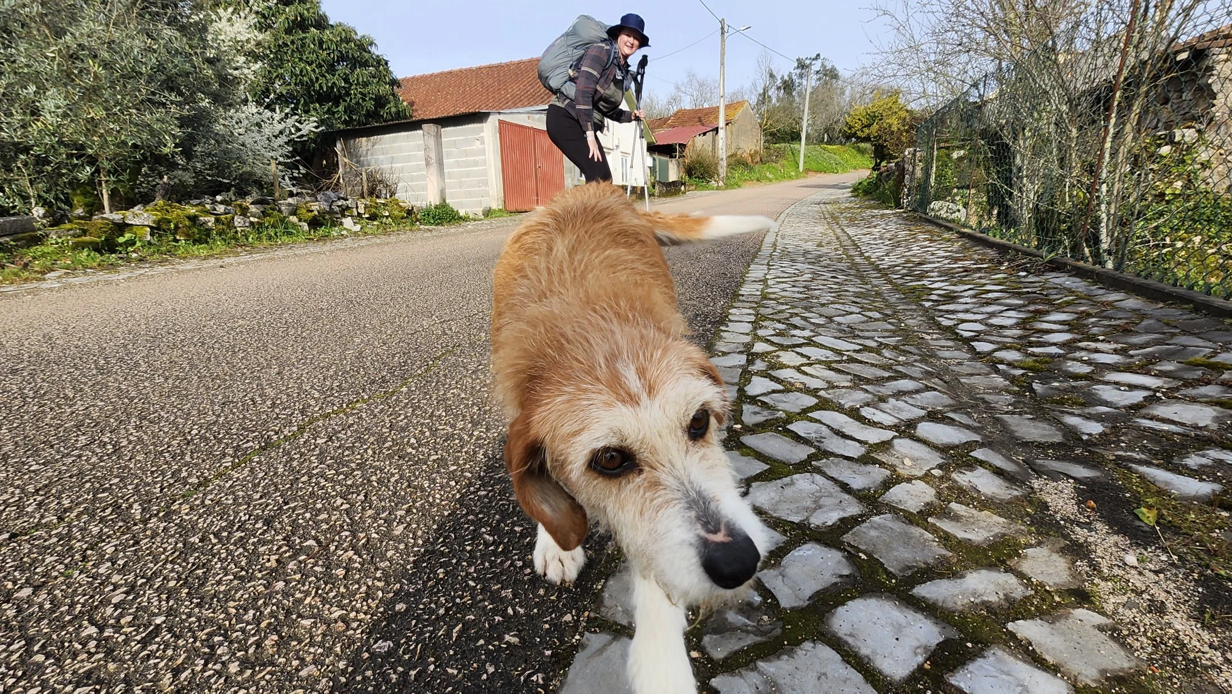 It was a great hiking temperature most of the day. The clouds and rain kept it cool. But this is still central Portugal in March, and when the sun hit us in full rain gear this afternoon, it was HOT! Think steamed clams.
